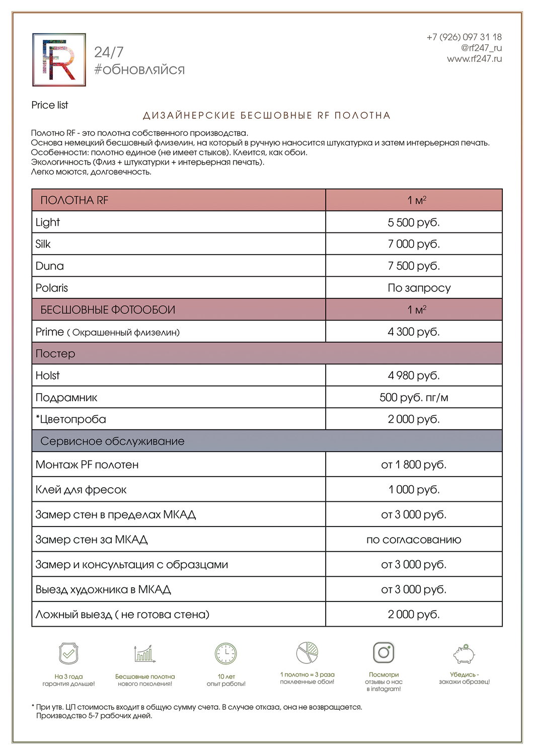 3. Подбор типа полотна (цветопроба) – 2000 руб. При заказе полотна цветопроба бесплатна
